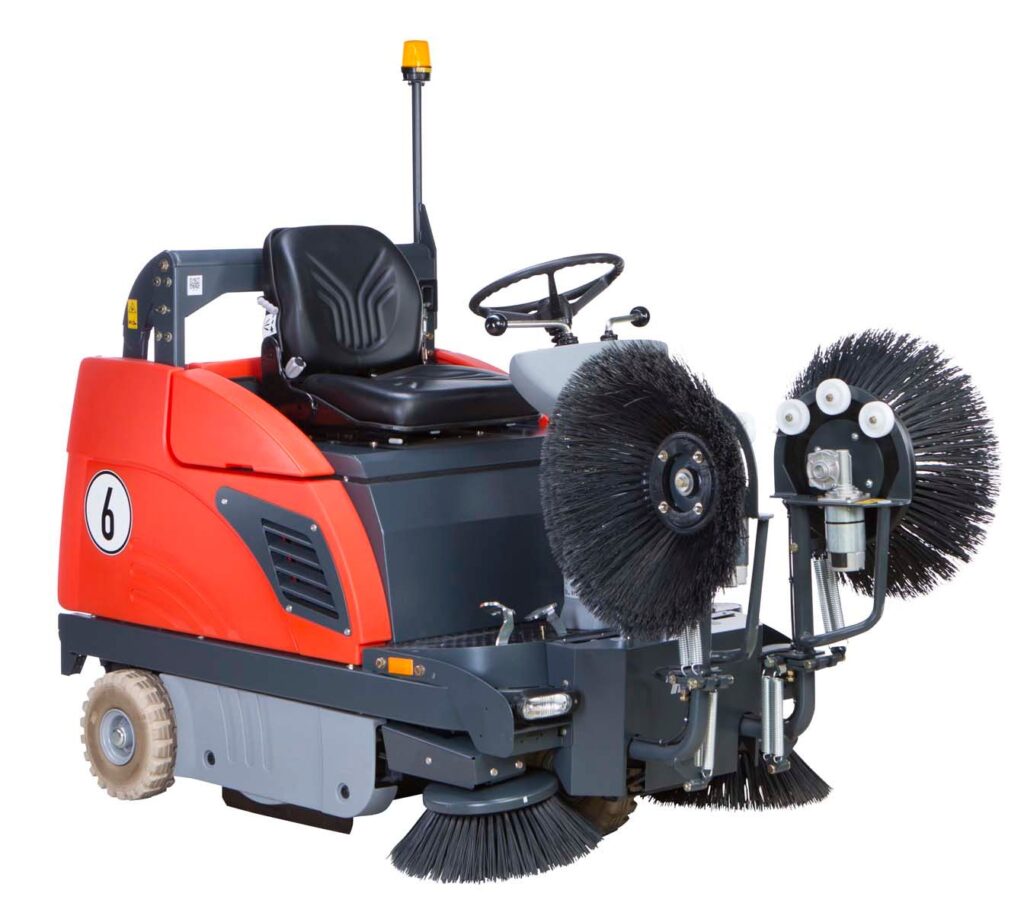 The Sweepmaster 980 R is a perfectly compact ride-on sweeper for use in both indoor and outdoors.